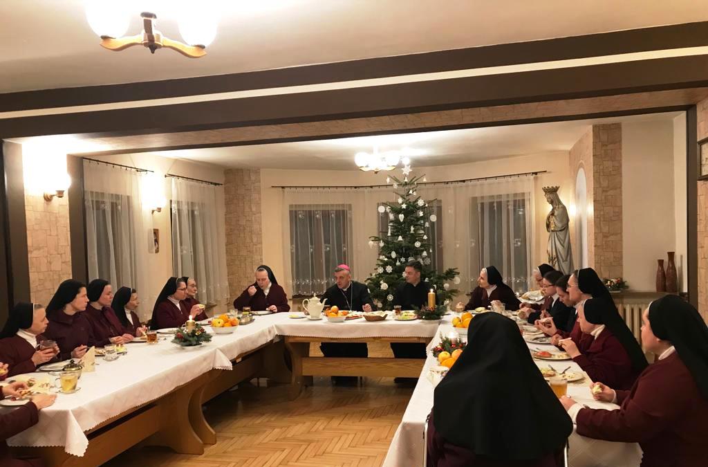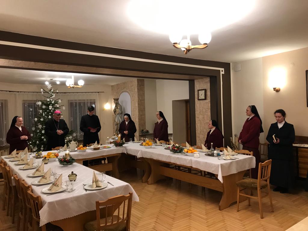 Z wielką radością powitałyśmy w naszej Kaplicy Księdza Biskupa Romana Pindla, który przewodniczył Eucharystii koncelebrowanej wraz ze swoim Sekretazem Ks. Piotrem Górą oraz z naszymi ojcami Jarosławem i Mirosławem. Ponieważ w tym dniu świętowaliśmy Nawrócenie św. Pawła Apostoła,więc Ksiądz Biskup mówił o nim w swojej homilię. Póżniej wszedł do klauzury zaproszony przez nas na kolację. Była to bardzo miła wizyta, Ks.
