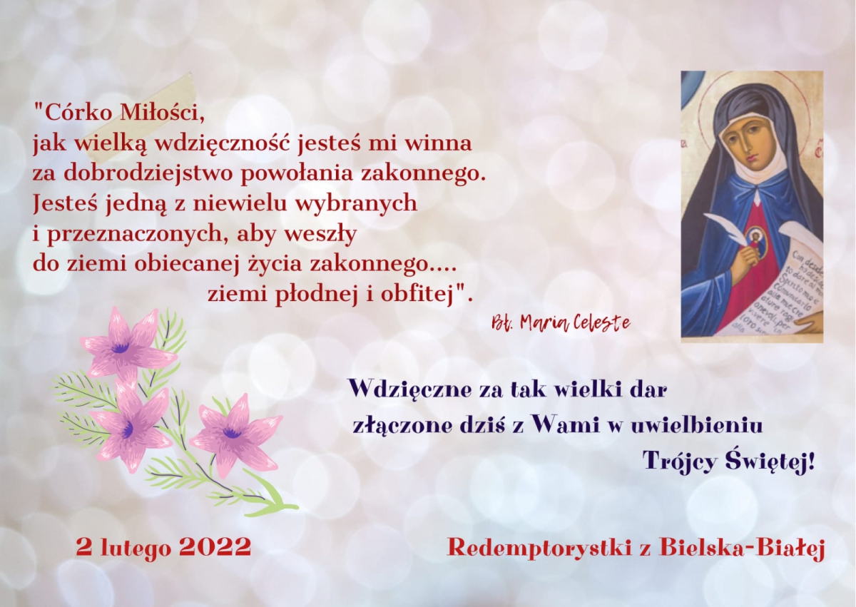 Rozważając Drogę Krzyżową Pana naszego Jezusa Chrystusa, pragniemy prosić bł. Marię Celeste, aby przeszła ją z nami i aby pomagała nam wejść w tajemnice kolejnych stacji Krzyżowej Drogi, abyśmy bardziej poznali miłość Odkupiciela i pełniej włączyli się w dzieło Odkupienia.