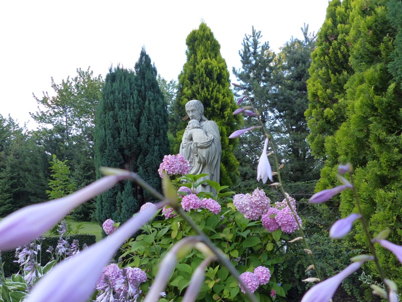 W naszym ogrodzie stoi figura św. Józefa z Dzieciątkiem.. Cichy i milczący, ziemski ojciec Jezusa ma być dla nas przykładem i przewodnikiem w tym niespokojnym Trzecim Tysiącleciu.