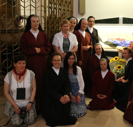 W czwartek - w Boże Ciało do naszej Kaplicy przybyli bracia klerycy z Tuchowa, z o. Tomaszem Jaroszem, by wraz z nami i z wiernymi zaśpiewać Akatyst do bł. Marii Celeste Crostarosa, którego tworczynią jest s. Maria Slepchenko - obecnie przelożona wspólnoty sióstr redemptorystek na Ukrainie ZOBACZ. POSŁUCHAJ..W tym dniu została też wystawiona nowa ikona naszej blogosławionej Założycielkii (napisana przez s. Marię Slepchenko), poblogosławiona w niedzielę - 18 czerwca przez naszego kapelana o. Andrzeja Kowalskiego. W czasie Eucharystii, kazanie okolicznościowe wyglosił o. Mirek Grakowicz - redemptorysta, który wychodząc od słów wloskiego poety Dante Alighieri przedstawił postać Matki Marii Celeste, przywolując słowa kard. Angelo Amato z kazania na Uroczystość beatyfikacji, że" święci są arcydzielami Boga".